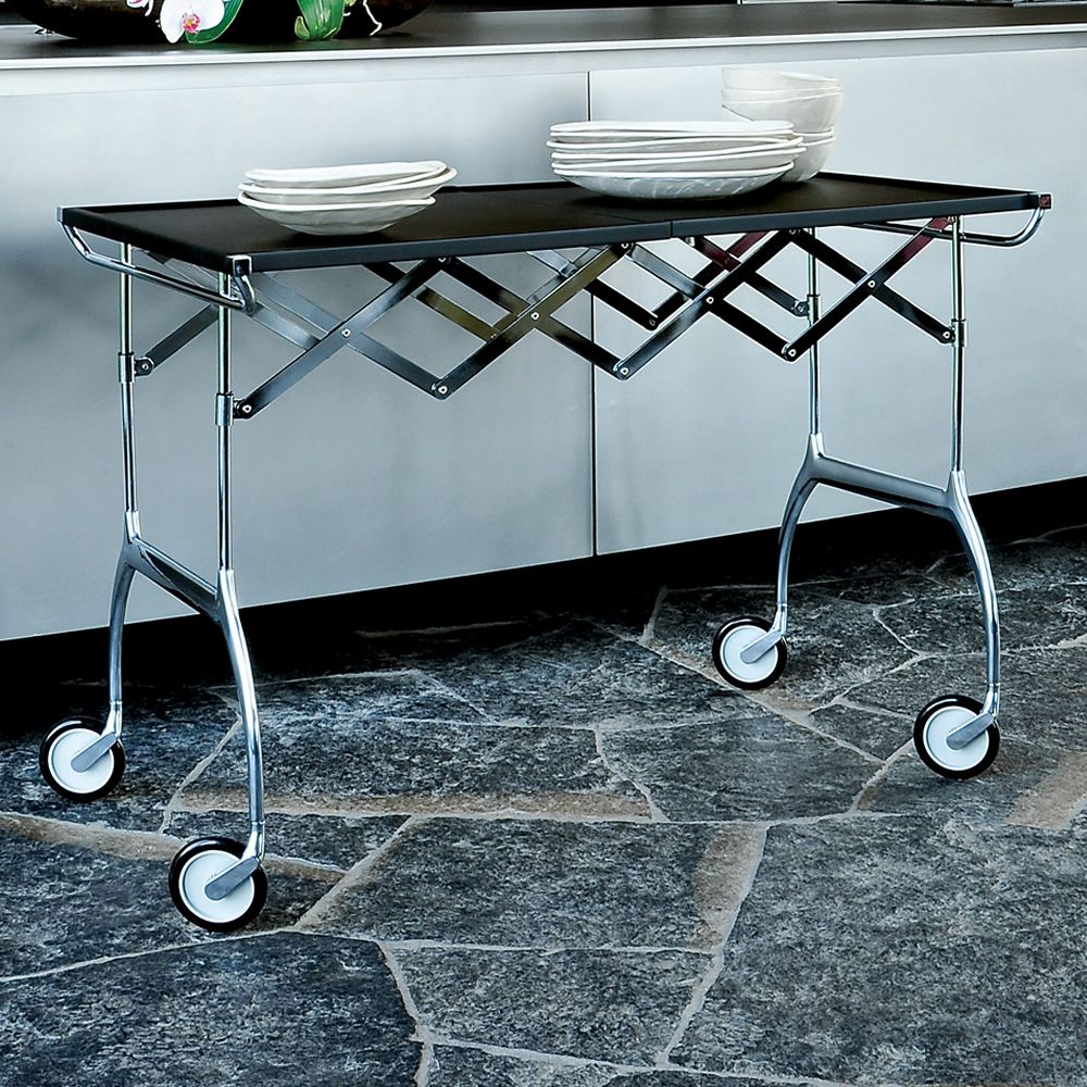 Battista Carrello Kartell di design, pieghevole, in metallo cromato e poliuretano
